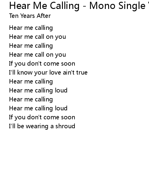 | Song | Hear Me Calling - Mono Single Version |