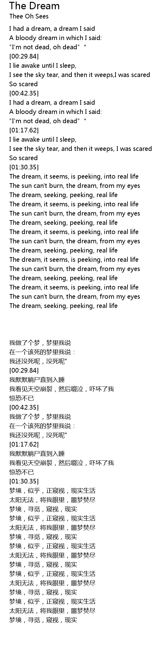 | [03:59.99] | The dream, seeking, peeking, real life |