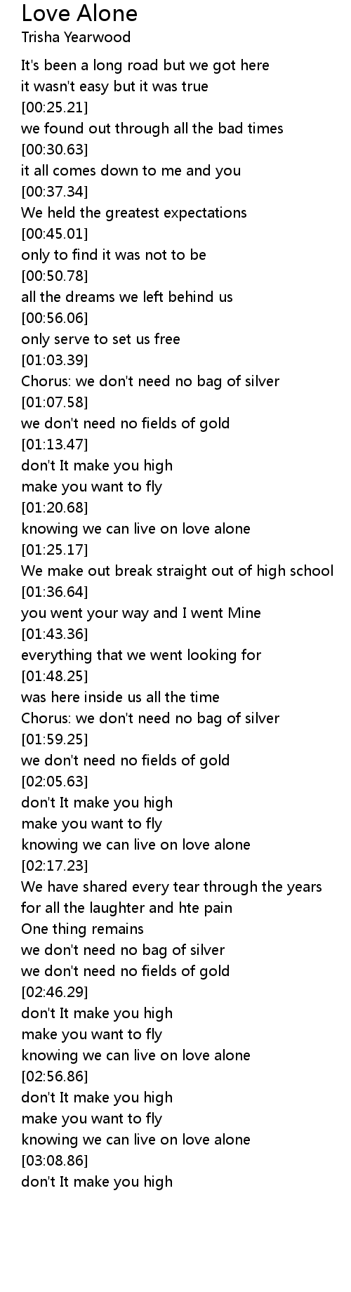 knowing we can live on love alone |