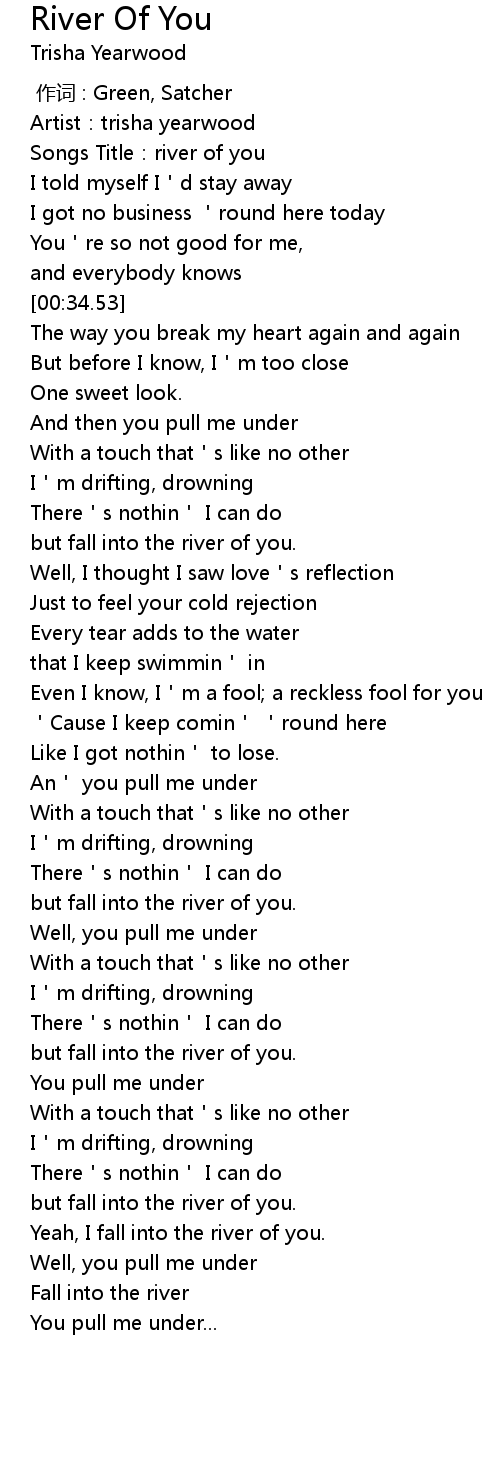 | [03:03.66] | Yeah, I fall into the river of you. |