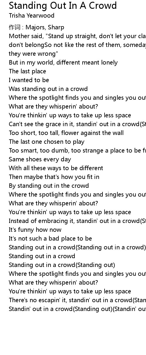 | Standin' out in a crowd(Standing out)(Standin' out) |