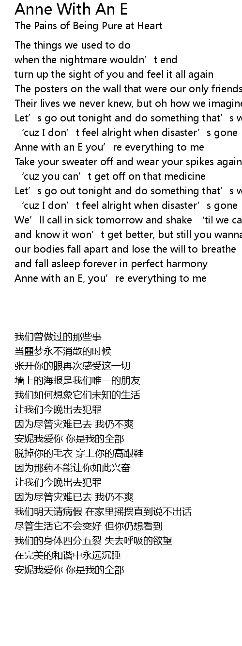 | [03:38.490] | Anne with an E, you' re everything to me |
