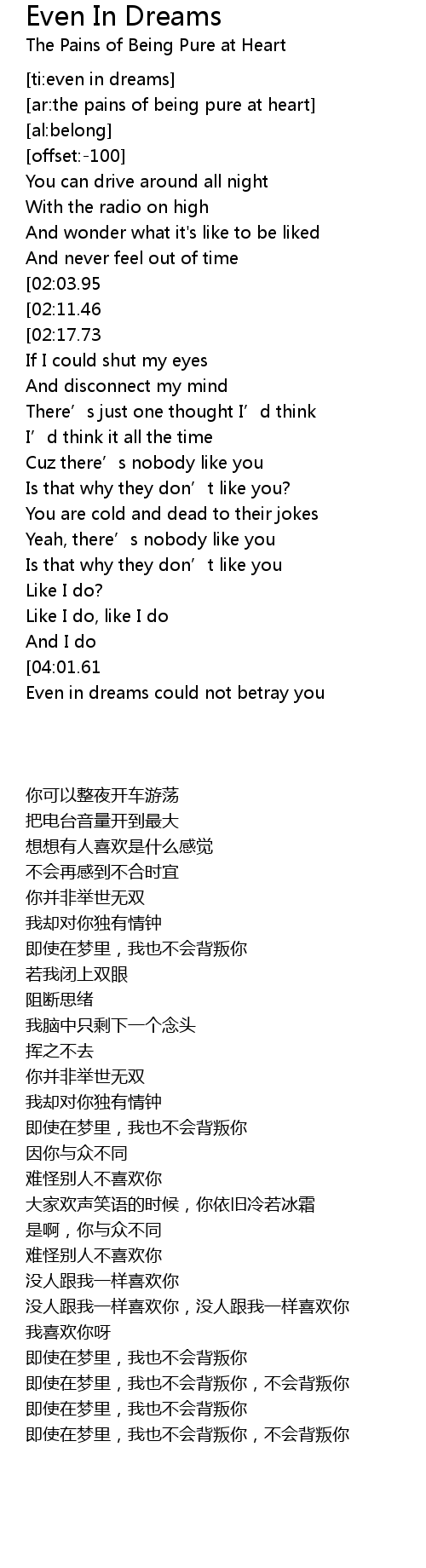 | [03:49.96] | Even in dreams could not betray you |