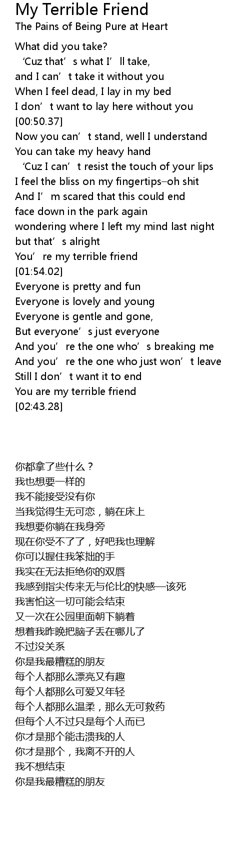 | [02:38.65] | You are my terrible friend |