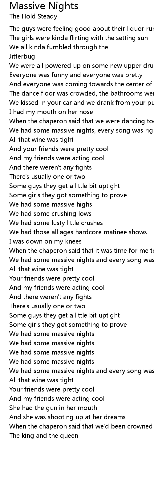 We had some massive nights and every song was right |
