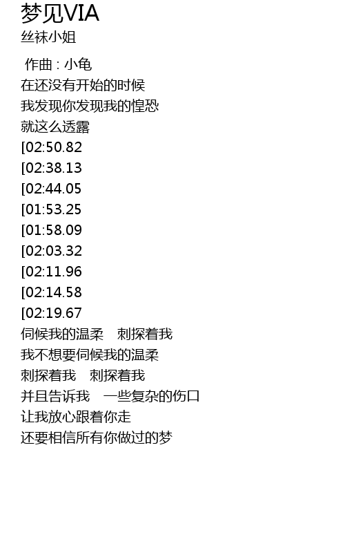 | [03:11.57][02:11.96] | xiang xin ni de meng |