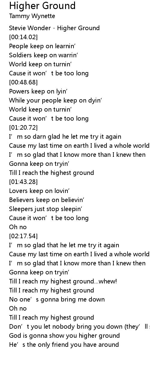 | [00:08.05] | Stevie Wonder Higher Ground |