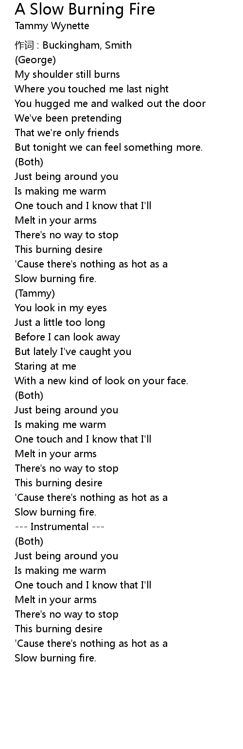 | Song | A Slow Burning Fire |