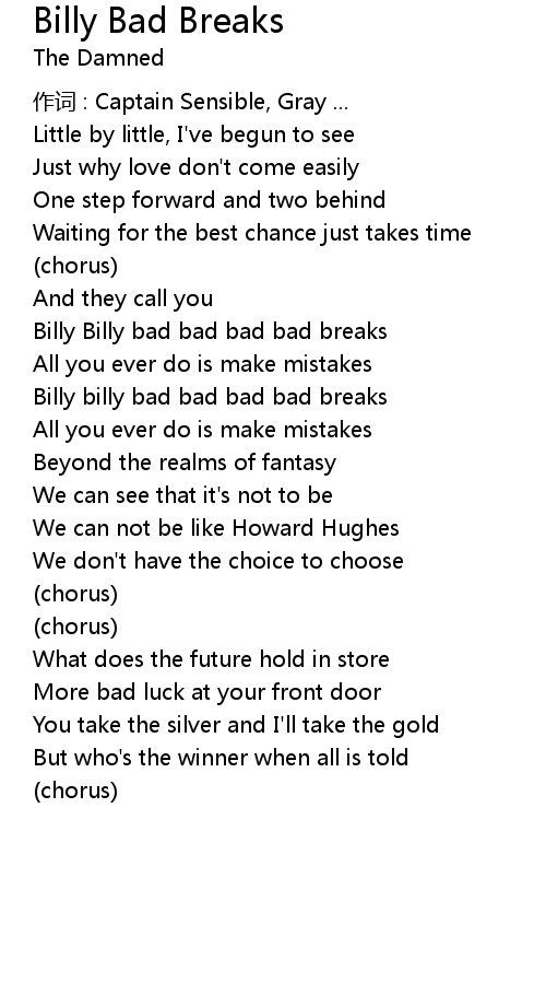 | Billy billy bad bad bad bad breaks | |