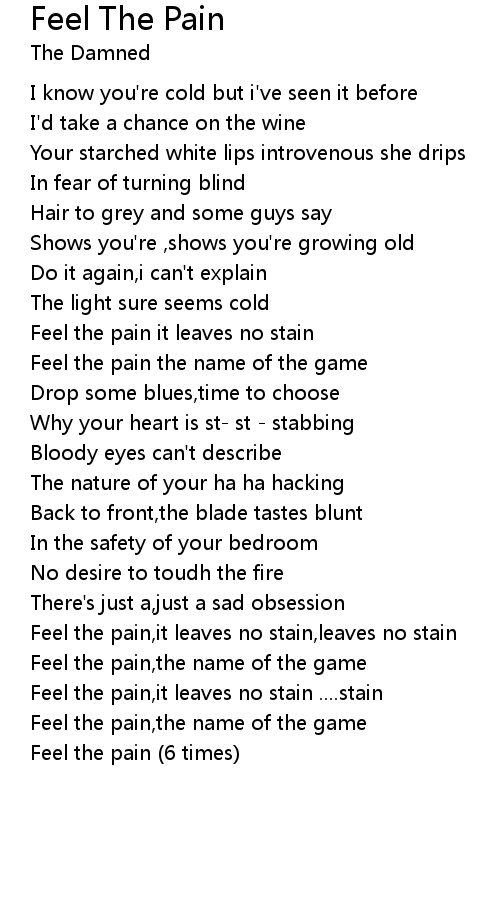 Feel the pain,it leaves no stain,leaves no stain |