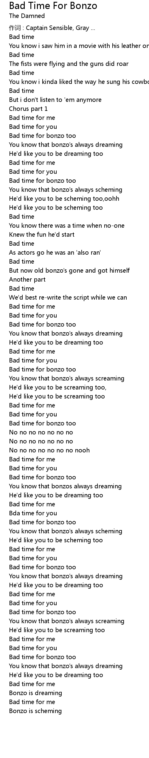 | You know that bonzo' s always dreaming | |