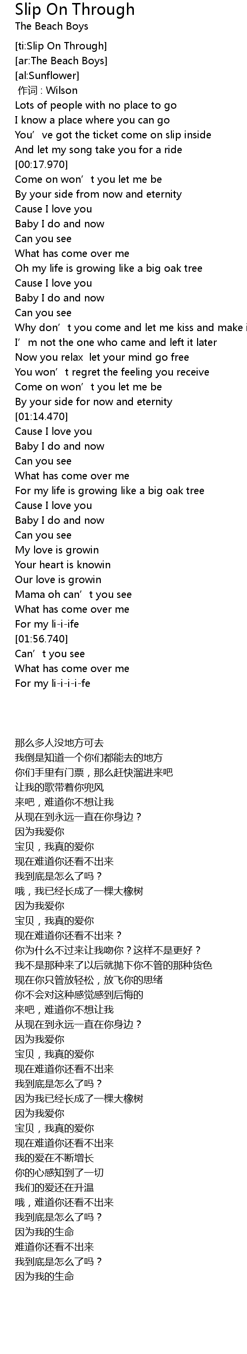 | [00:10.230] | You' ve got the ticket come on slip inside |