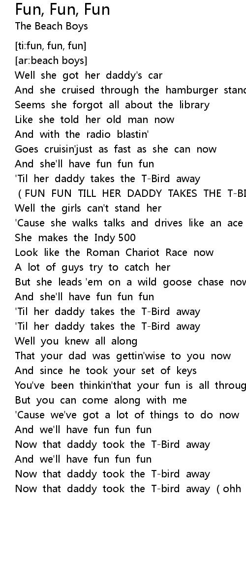 | [00:39.689] | (FUN FUN TILL HER DADDY TAKES THE T-BIRD AWAY) |