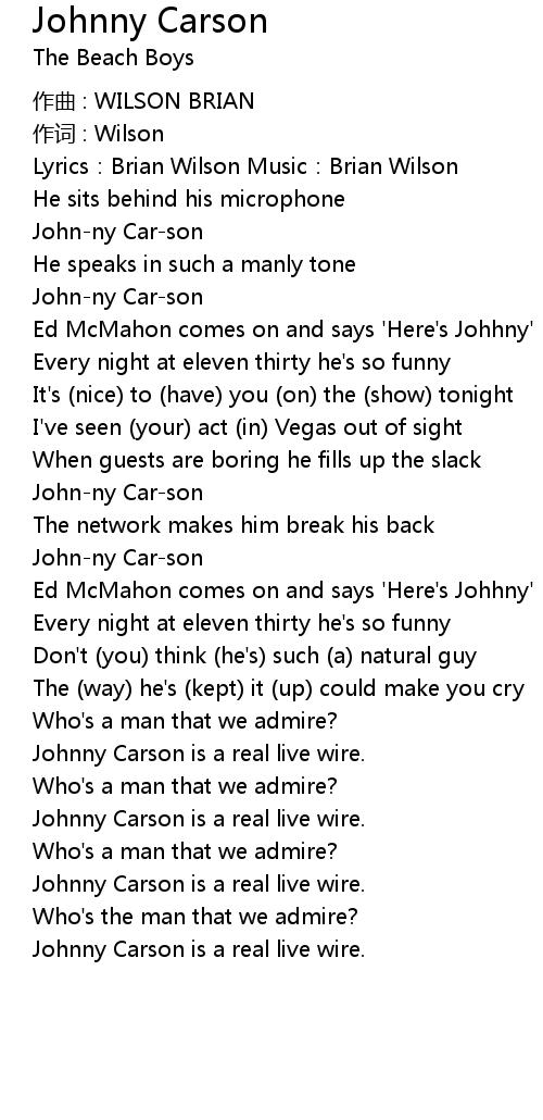 | Song | Johnny Carson |
