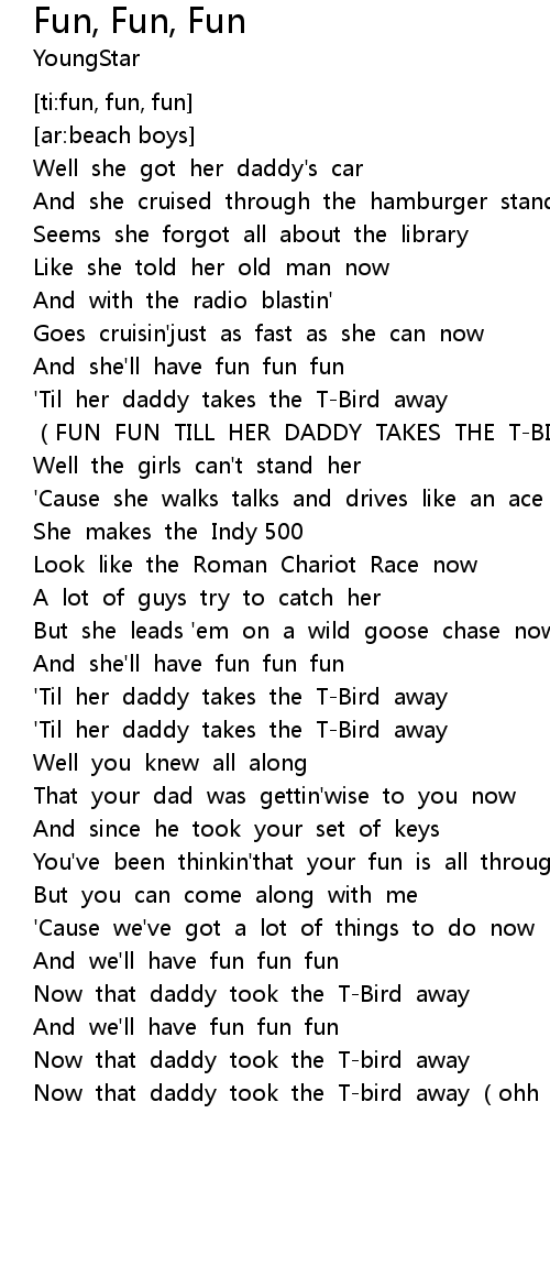 | [00:39.689] | (FUN FUN TILL HER DADDY TAKES THE T-BIRD AWAY) |