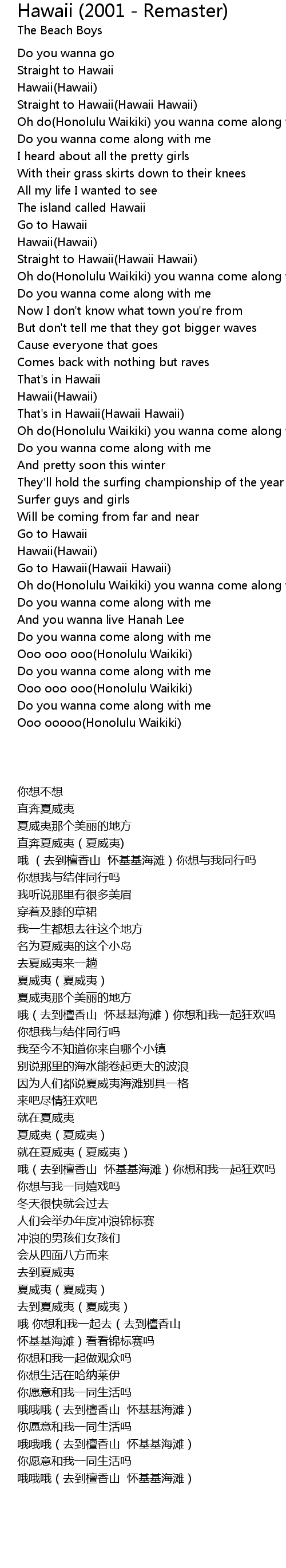 Oh do(Honolulu Waikiki) you wanna come along with me |