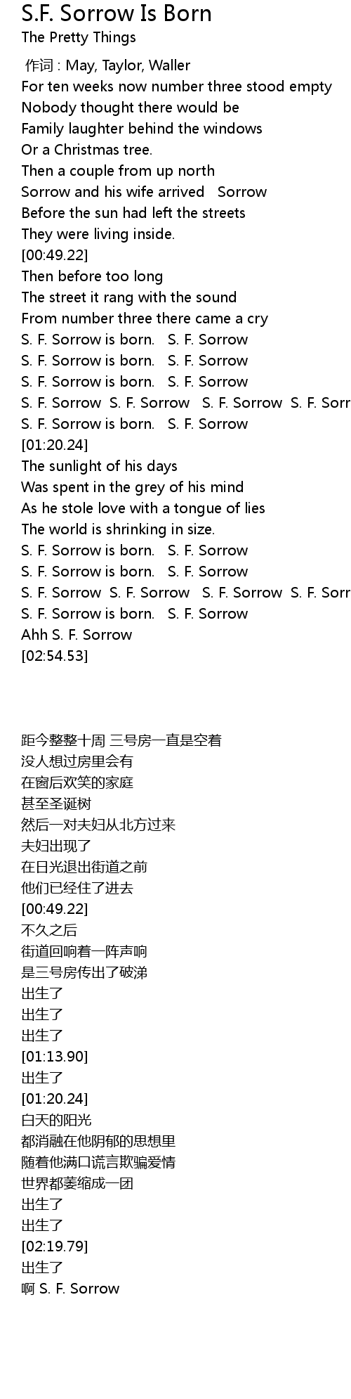| [02:22.35] | S. F. Sorrow is born. S. F. Sorrow |