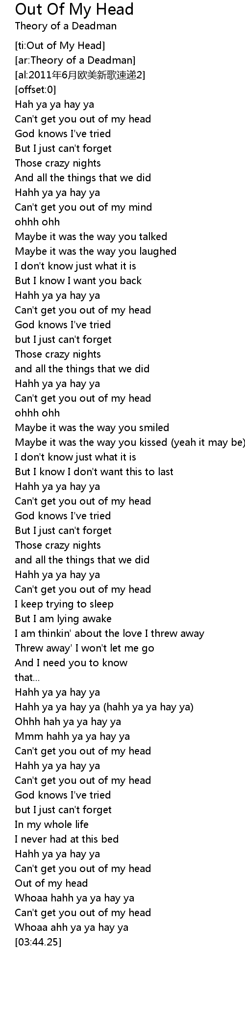 | [ti:Out of My Head] | |