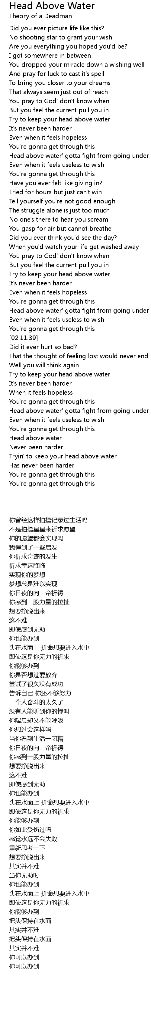 Head above water' gotta fight from going under |
