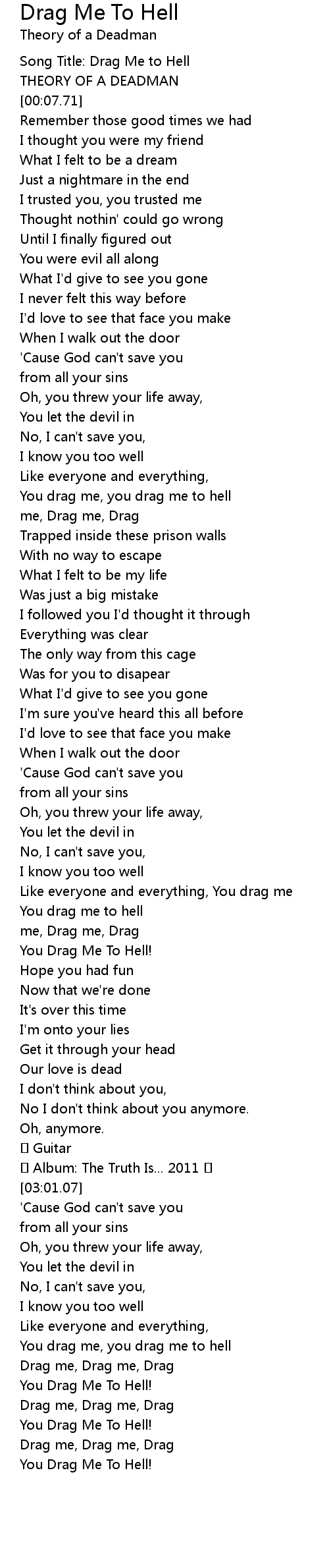 | [00:03.65] | Song Title: Drag Me to Hell |