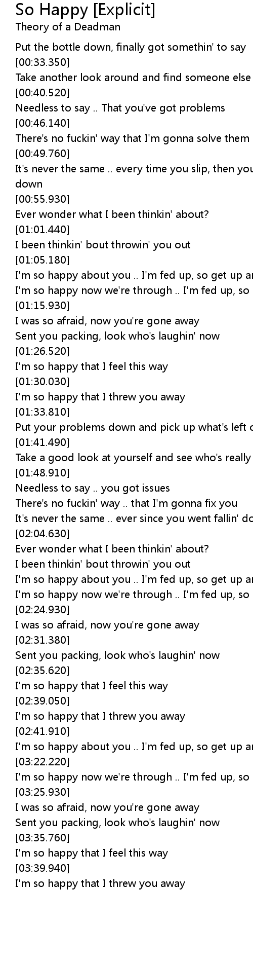 I'm so happy now we're through .. I'm fed up, so get up and get out |