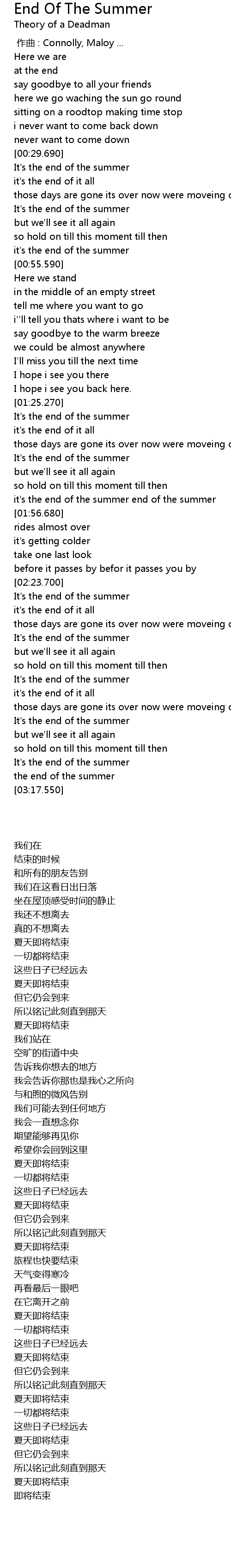 | [01:47.780] | it' s the end of the summer end of the summer |