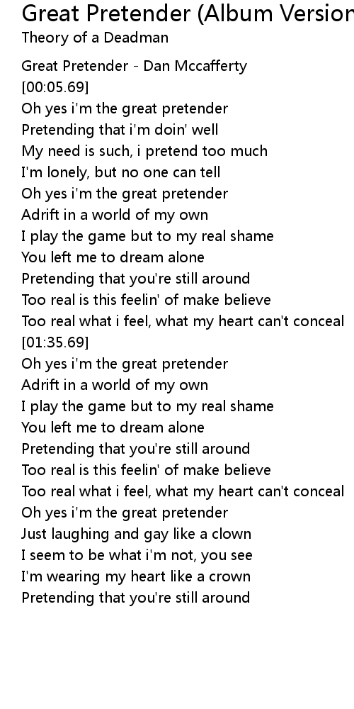 Oh yes i'm the great pretender |