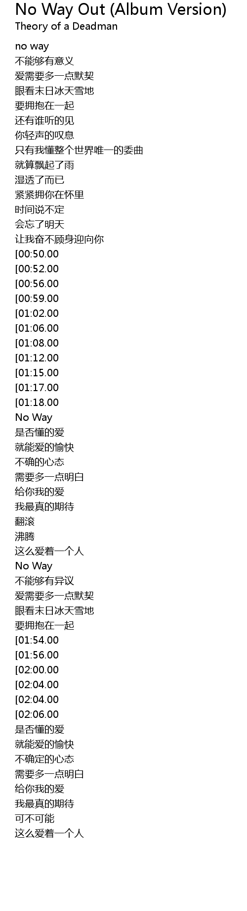 | [02:28.00][00:52.00] | 不能够有异议 |