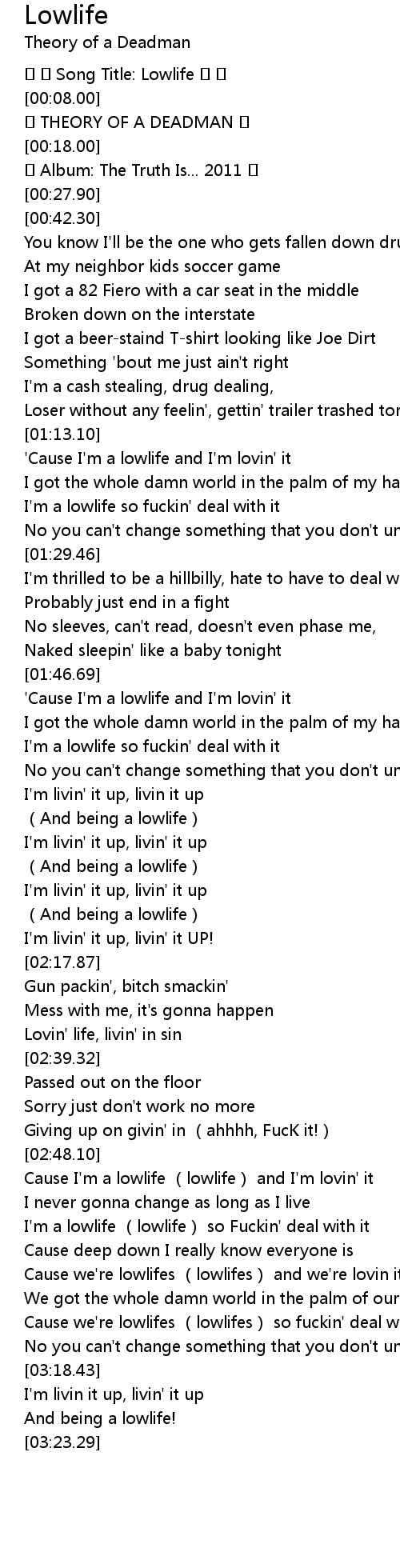 | [01:21.35] | I'm a lowlife so fuckin' deal with it |