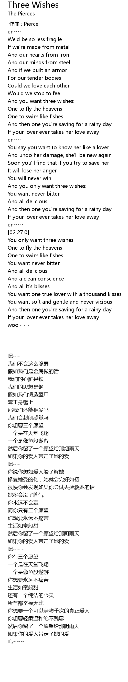 | [02:28.400] | You only want three wishes: |