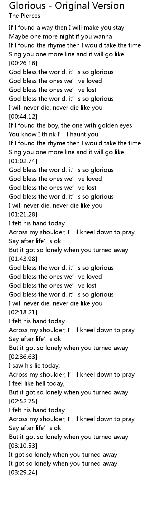 | [01:31.21] | Across my shoulder, I’ll kneel down to pray |