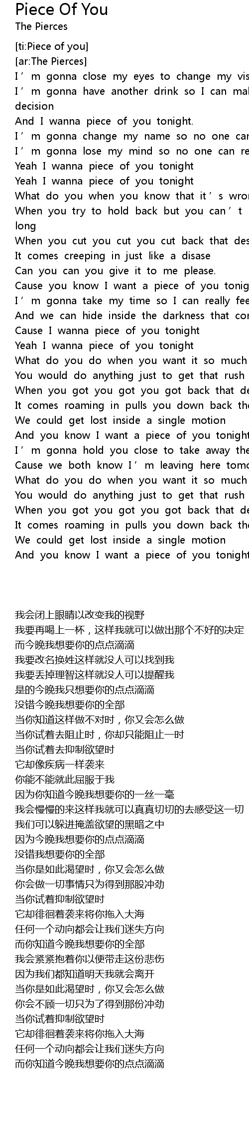 | [ti:Piece of you] | |