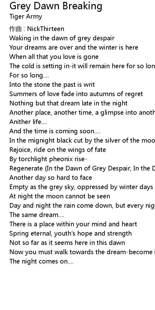 | Regenerate In the Dawn of Grey Despair, In the Dawn, you wil find it there | |