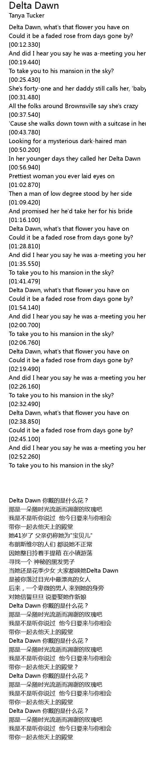 In her younger days they called her Delta Dawn |