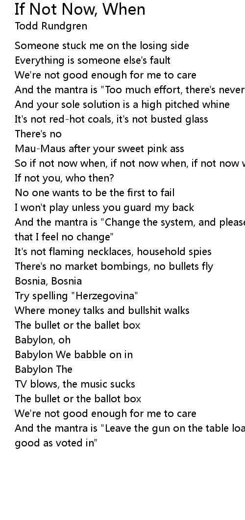 So if not now when, if not now when, if not now when? |