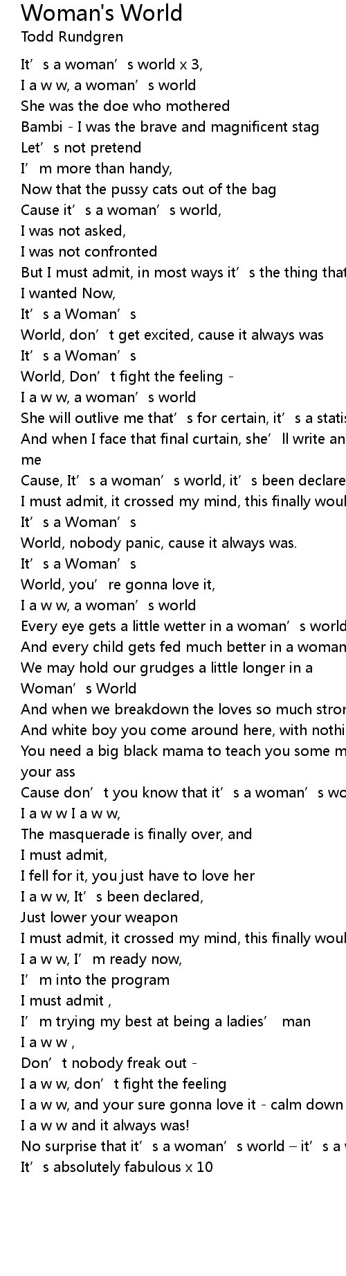 | Cause don' t you know that it' s a woman' s world, it always was! | |