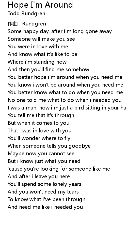 | You know i won't be around when you need me | |