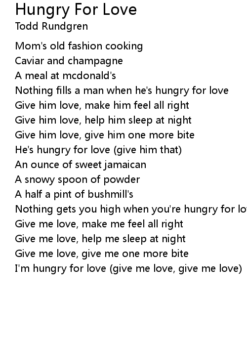 He's hungry for love (give him that) |