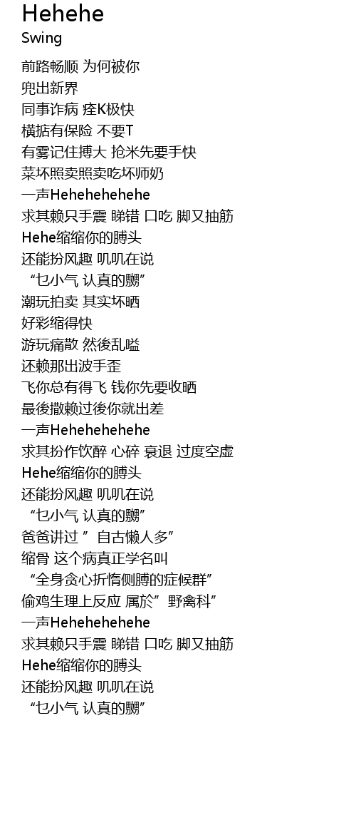 | [01:04.43] | Hehe缩缩你的膊头 |