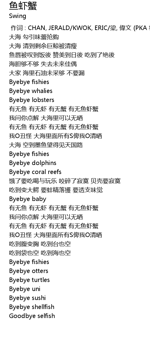 | [02:56.50] | 有无鱼 有无虾 有无蟹 有无鱼虾蟹 |