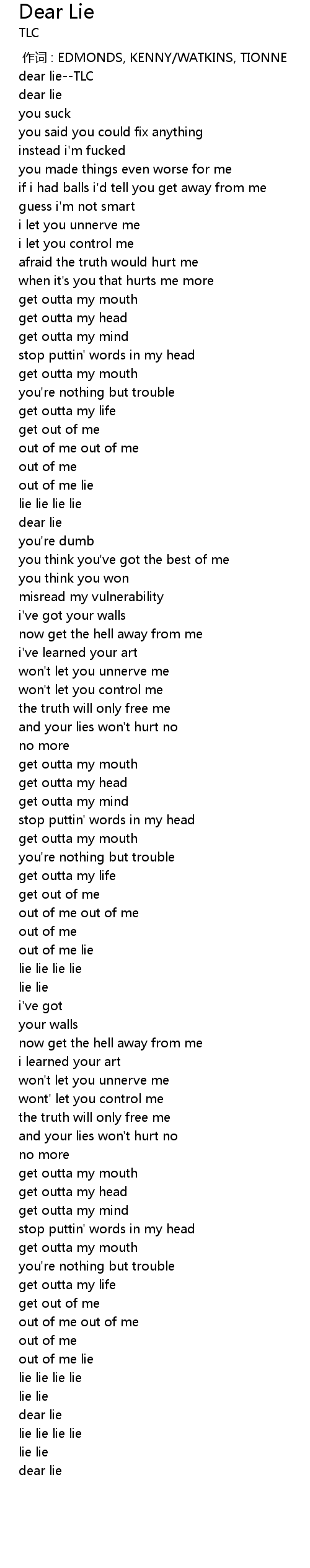 | [00:02.94] | dear lie--TLC |