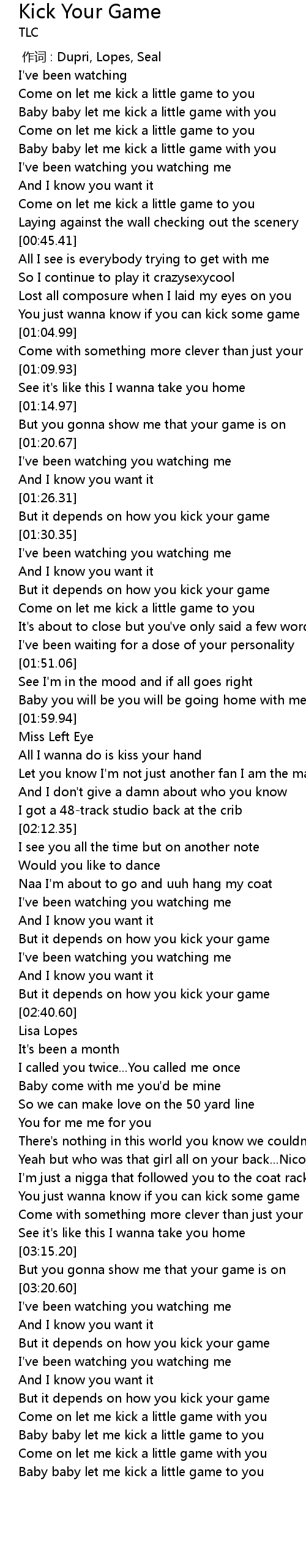 | [03:48.44] | Baby baby let me kick a little game to you |