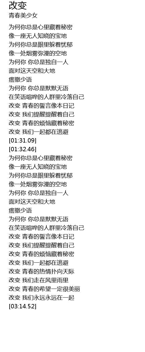 | [02:32.47] | 改变 青春的誓言像本日记 |