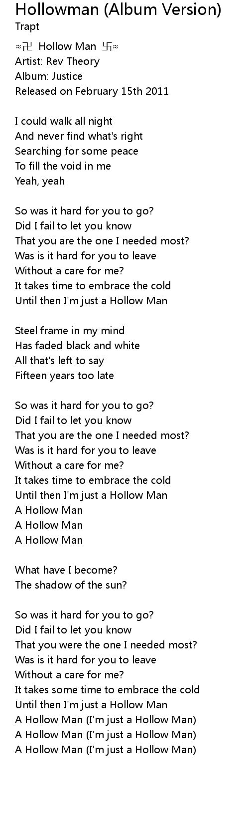 | A Hollow Man I' m just a Hollow Man |