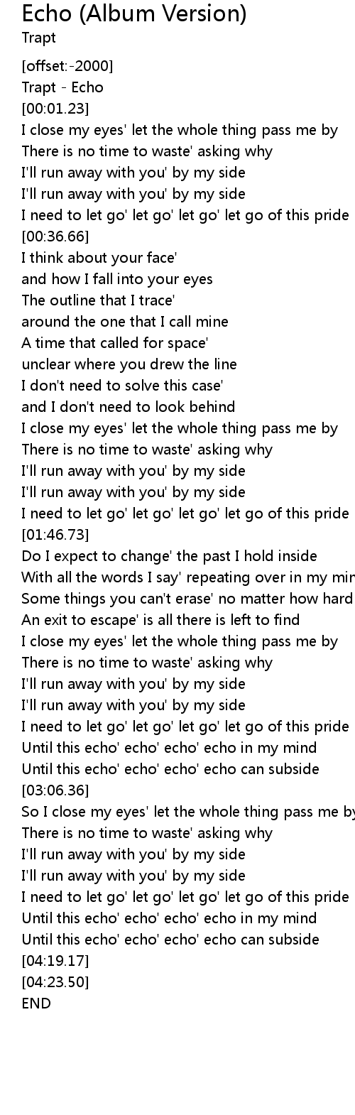 | [04:14.27] | Until this echo' echo' echo' echo can subside |