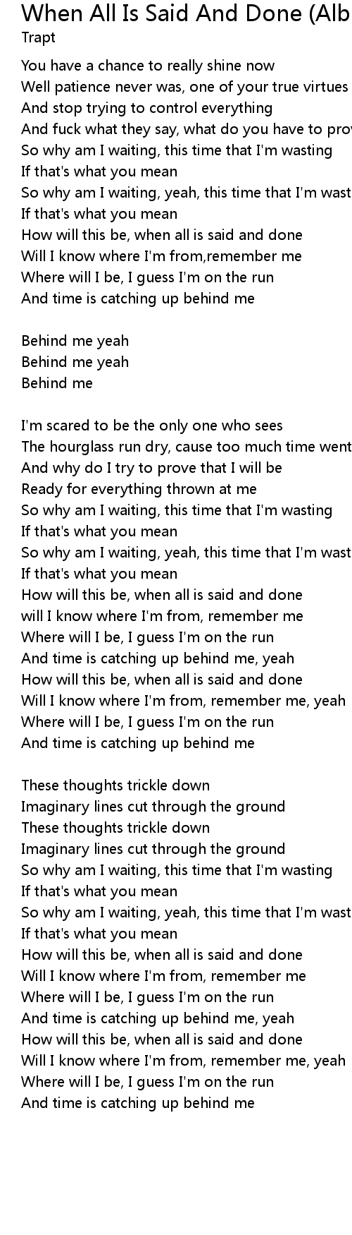 | So why am I waiting, yeah, this time that I'm wasting | |
