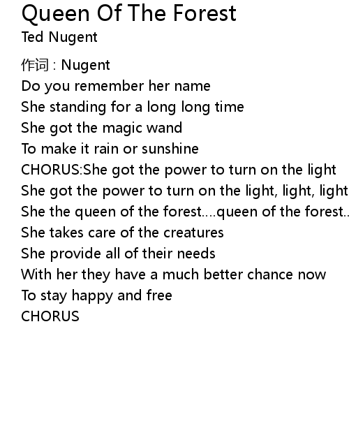 | Song | Queen Of The Forest |