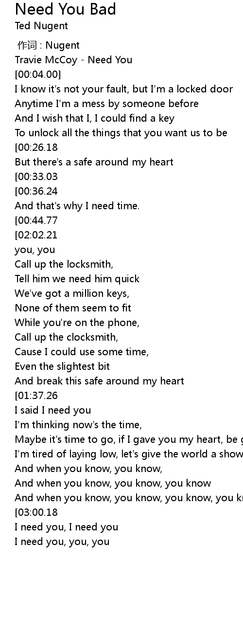 | [02:34.99][00:44.77] | I said I need you, |