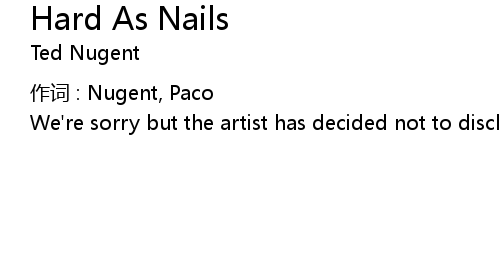 | We' re sorry but the artist has decided not to disclose the lyrics for this song. |