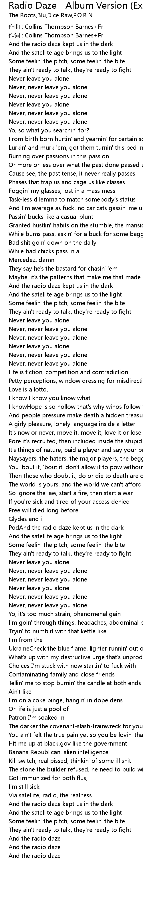 | 作词 : Collins Thompson Barnes+Fr | |